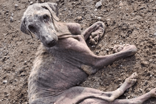 Found in the street, body full of tumors. Severe anemia, infection, malnutrition.