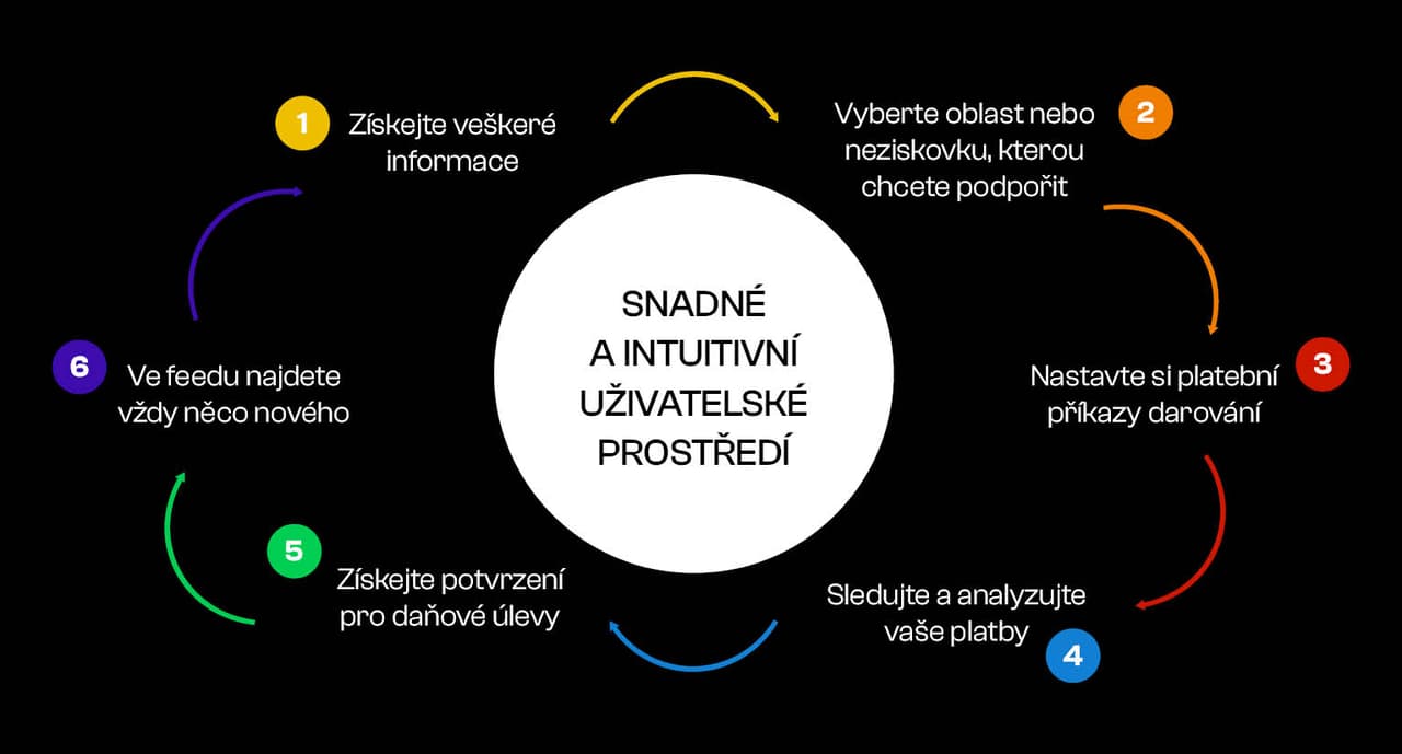 Stejně tak máš po ruce kompletní přehled tvojí dárcovské historie a tvoje portfolio darů. Každý rok si pak můžeš jednoduše zažádat o potvrzení pro daňové úlevy. Vše je velice intuitivní, jednoduché, transparentní a zdarma.